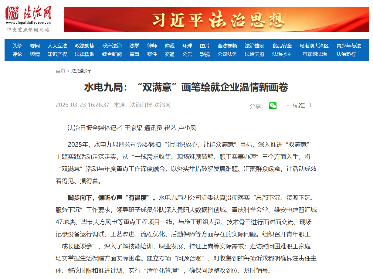 《法治日报》水电九局:“双满意”画笔绘就企业温情新画卷