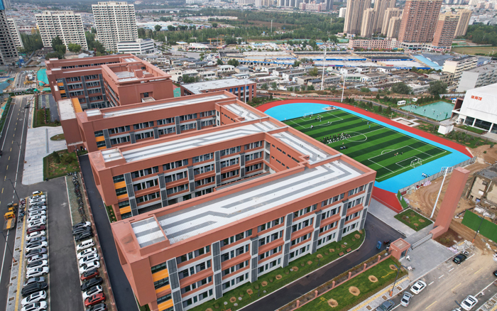 榆林市榆阳区小西沙棚户区改造项目建设工程N3标段A2-7地块,位于榆林市榆阳区崇文路以北,迎宾大道以南,文化北路以东。作为小西沙棚改片区的“教育引擎”,第二十一中学和第二十六小学总建筑面积超3.65万平方米,覆盖从小学到初中的九年一贯制教育需求。项目团队以“建百年校园,育时代新人”为目标,在64.24亩的规划范围内,不仅完成了教学楼、宿舍楼、风雨操场等5栋主体建筑的建设,更同步落地了校园智慧安防系统、多媒体教学平台、标准化实验室等现代化教学设施,以及300米环形跑道、篮球场、景观步道等配套场地,全方位满足师生教学、运动、生活需求。
